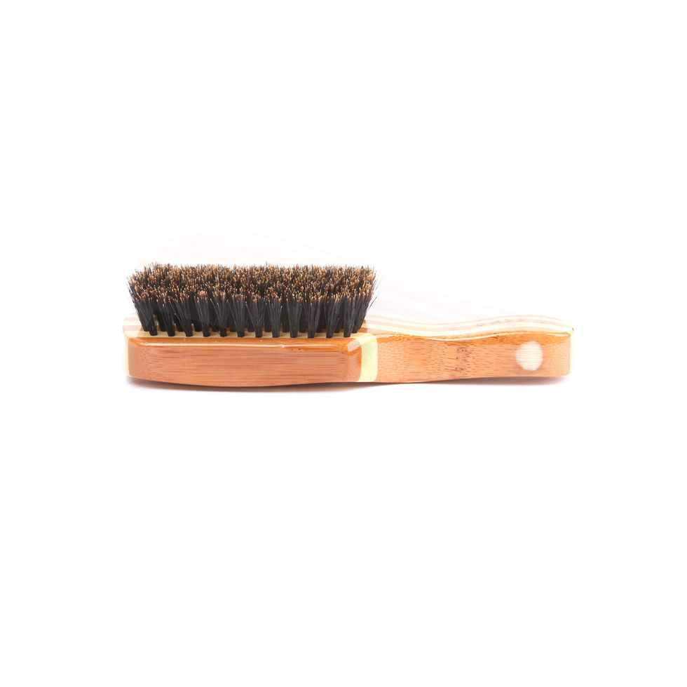 Professional barbering & men’s grooming hairbrush featuring 100% pure premium natural boar bristles for superior hair styling, cleans fades, and scalp stimulation. Classic club style “wave brush” handle design elegantly crafted from beautiful eco-friendly natural bamboo with a luxury grade shiny finish. Color: Natural Stripe Bamboo For nearly 50 years, Bass has designed luxury grade men's hairbrushes with an emphasis on natural materials. Our products are surprisingly affordable and recommended by master barbers worldwide. Part of the distinguished Classic Collection by Bass Brushes, this men’s grooming hairbrush is designed for barbershop-level performance with timeless craftsmanship. Featuring 100% pure premium natural boar bristles—free from synthetic fillers—it distributes natural scalp oils evenly through the hair for enhanced strength, shine, and manageability. The classic club-style handle, made from eco-friendly natural bamboo and finished with a high-gloss luxury coating, provides both elegance and durability. Ideal for short cuts and medium to thick hair, this brush stimulates the scalp while helping to lift away dander, debris, and excess product. Used and recommended by professional barbers, it's the perfect tool for achieving a polished, healthy, and refined finish. Discover the Classic Collection by Bass Brushes | Soft Boar Bristle Men's Hairbrushes |