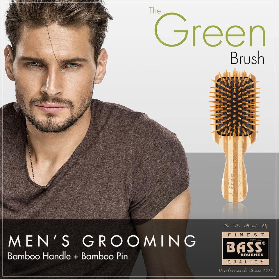 Our Green Brush Series of Men's Grooming hairbrushes utilize 100% Bass select premium natural bamboo handle and bamboo pins with a radius tip for comfortable Gua Sha scalp stimulation and are expertly designed to glide smoothly through the hair for a clean even finish. Featured in fine barbershops worldwide.
